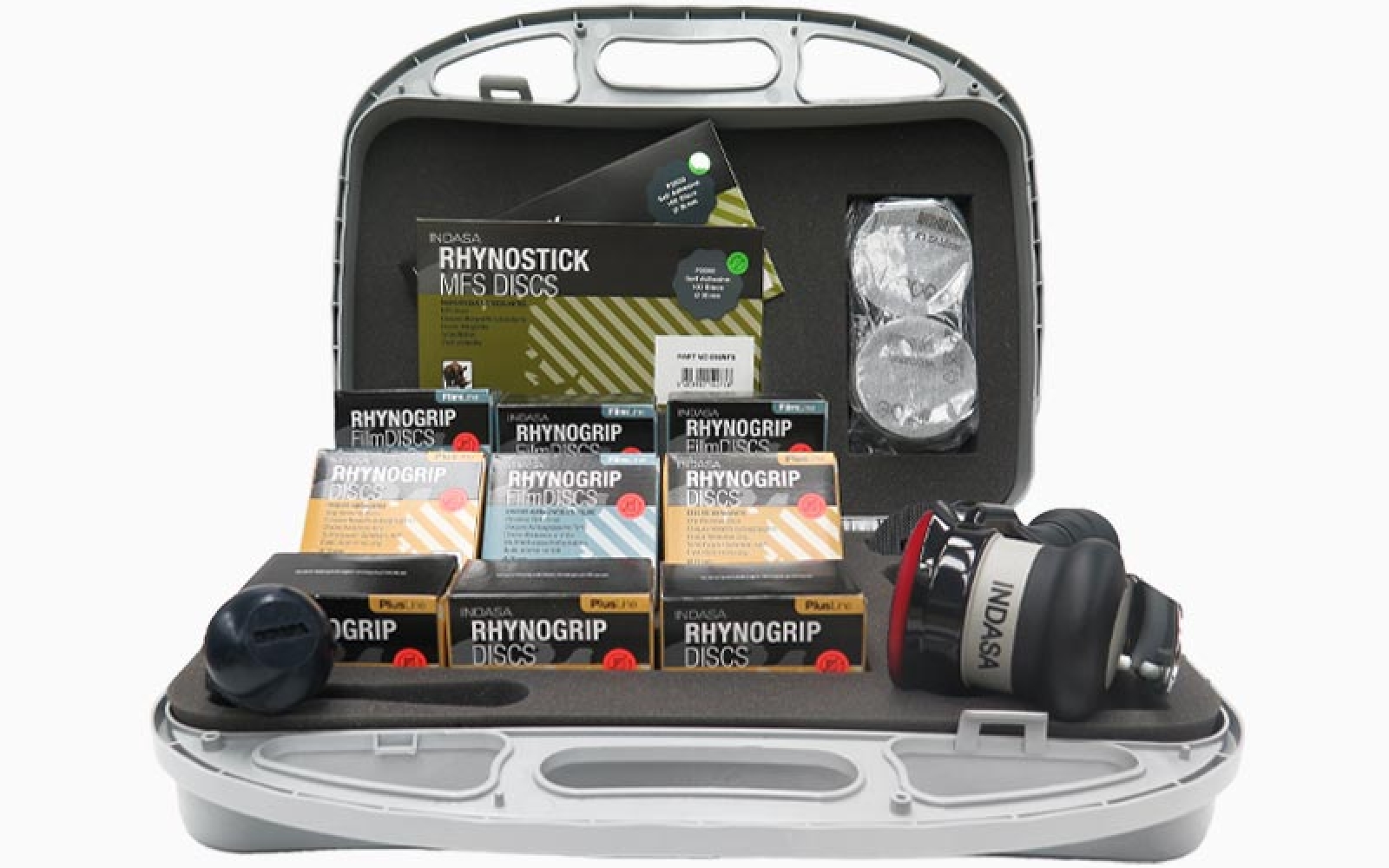 Das Indasa Spot-Reparatur-Kit ist die komplette Lösung für professionelle Kleinschadenreparaturen. Von der präzisen Oberflächenvorbereitung bis zur Endbearbeitung – dieses Set kombiniert den leistungsstarken Druckluft-Exzenterschleifer Ø75 mm mit einer umfangreichen Auswahl an INDASA Schleifmitteln, verpackt in einem robusten Transportkoffer.